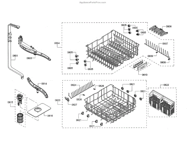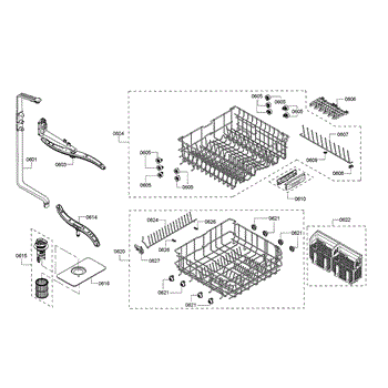 The Upper Dishrack Assembly is an OEM replacement part for Bosch dishwashers. Causes of a bad assembly include cracked or broken rack modules from years of abusive slamming during loading. Mineral buildup may also lead to jammed or stuck tines no longer gliding freely between positions. Symptoms of a bad Upper Dishrack include: