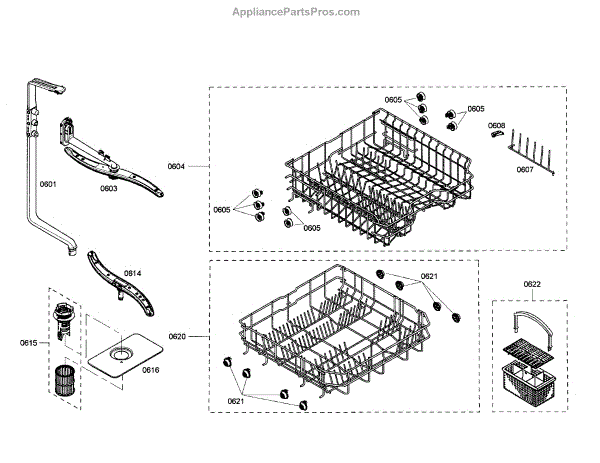 The Upper Dishrack Assembly is an OEM replacement part for Bosch dishwashers. Causes of a bad assembly include cracked or broken rack modules from years of abusive slamming during loading. Mineral buildup may also lead to jammed or stuck tines no longer gliding freely between positions. Symptoms of a bad Upper Dishrack include: