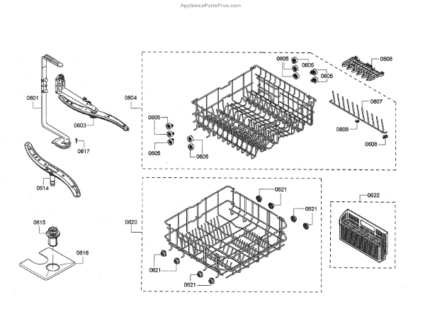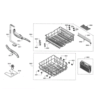 The Upper Dishrack Assembly is an OEM replacement part for Bosch dishwashers. Causes of a bad assembly include cracked or broken rack modules from years of abusive slamming during loading. Mineral buildup may also lead to jammed or stuck tines no longer gliding freely between positions. Symptoms of a bad Upper Dishrack include: