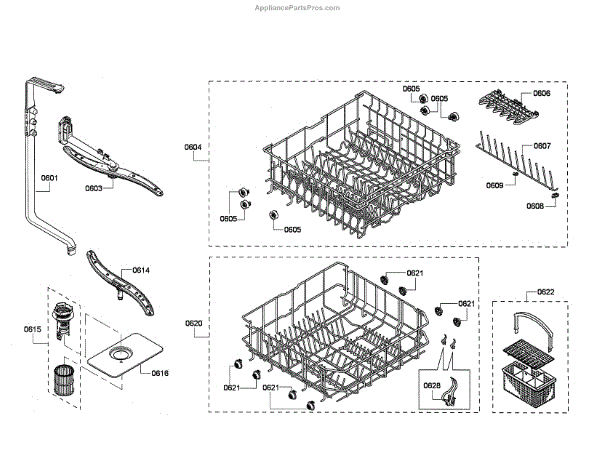 The Upper Dishrack Assembly is an OEM replacement part for Bosch dishwashers. Causes of a bad assembly include cracked or broken rack modules from years of abusive slamming during loading. Mineral buildup may also lead to jammed or stuck tines no longer gliding freely between positions. Symptoms of a bad Upper Dishrack include: