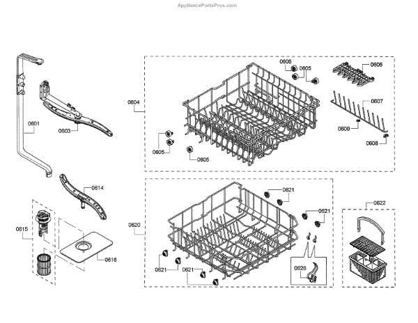 The Upper Dishrack Assembly is an OEM replacement part for Bosch dishwashers. Causes of a bad assembly include cracked or broken rack modules from years of abusive slamming during loading. Mineral buildup may also lead to jammed or stuck tines no longer gliding freely between positions. Symptoms of a bad Upper Dishrack include: