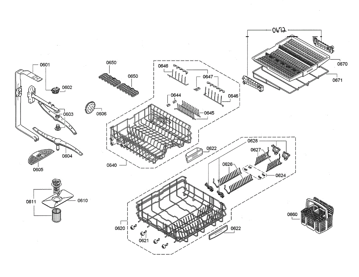 This replacement cutlery drawer is the removable silverware tray that installs at the top of select Bosch dishwashers to organize utensils and improve cleaning access. Restores proper utensil placement and keeps forks, knives and spoons separated during the wash. What it does: