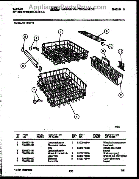 Replacement silverware basket for dishwashers. Holds utensils during wash cycles. Needed when original basket is cracked, broken, or missing.