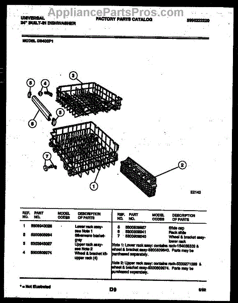 This upper dishwasher rack holds plates, glasses and small items on the top level so your dishes stay organized and cleaned during a cycle. It replaces a cracked, bent or worn upper rack to restore proper loading. What it does: