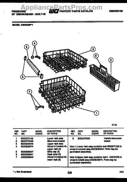 Parts for Frigidaire DW3400PW1: 08 - Racks And Trays Parts