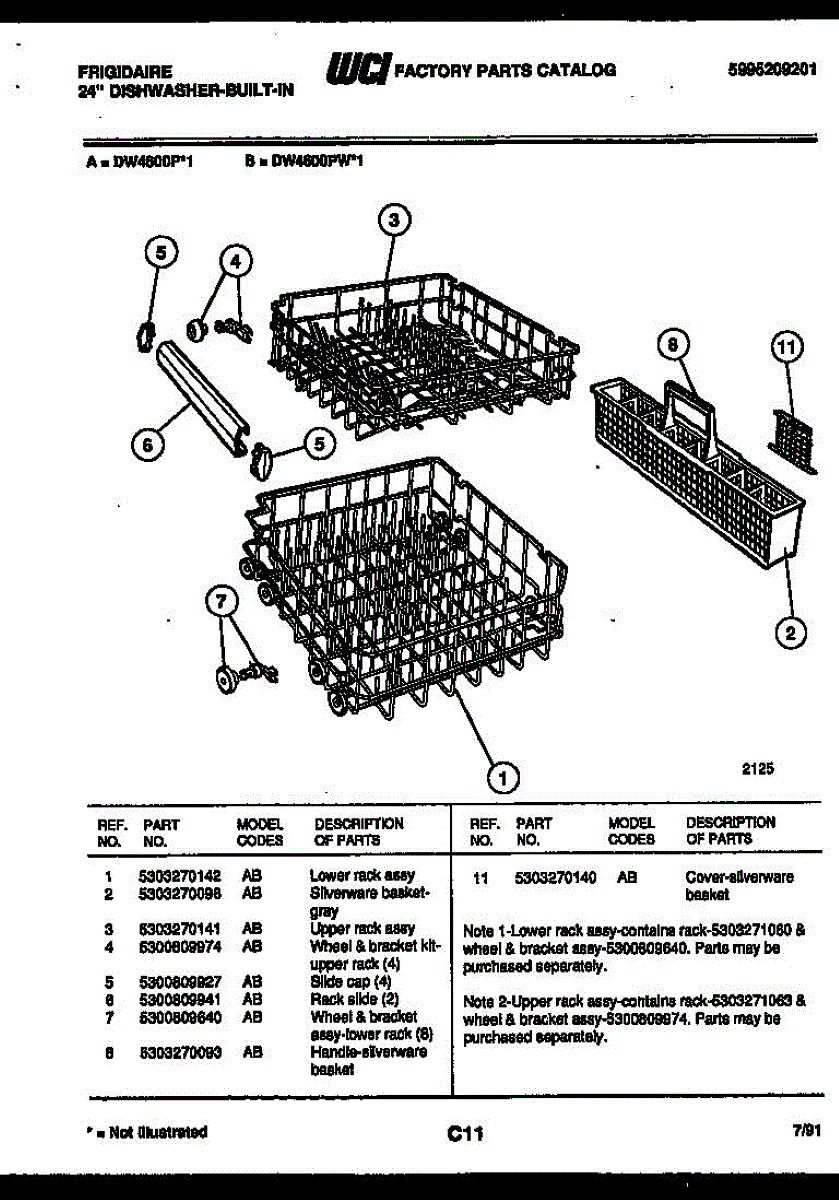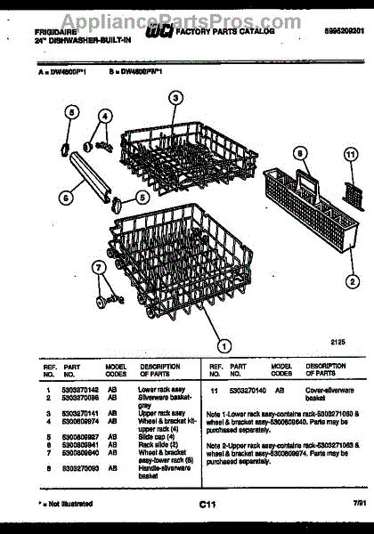 Parts for Frigidaire DW4600PW1: 08 - Racks And Trays Parts