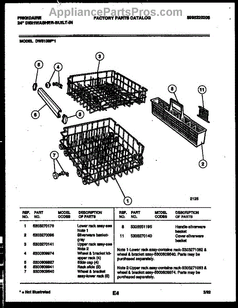 Parts for Frigidaire DW5100PW1: 08 - Racks And Trays Parts