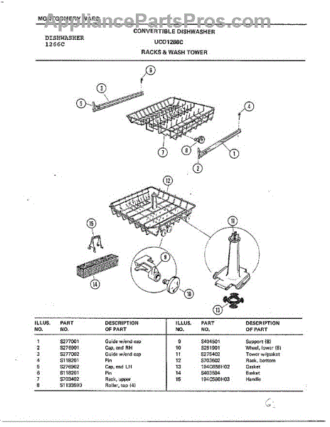 Parts for Frigidaire 1266C: Racks & Wash Tower Parts