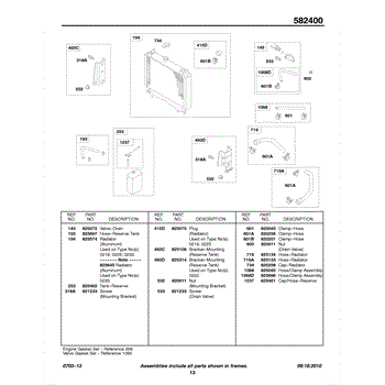 Parts for Briggs & Stratton 582447-0131-E2: Radiator, Hoses Parts