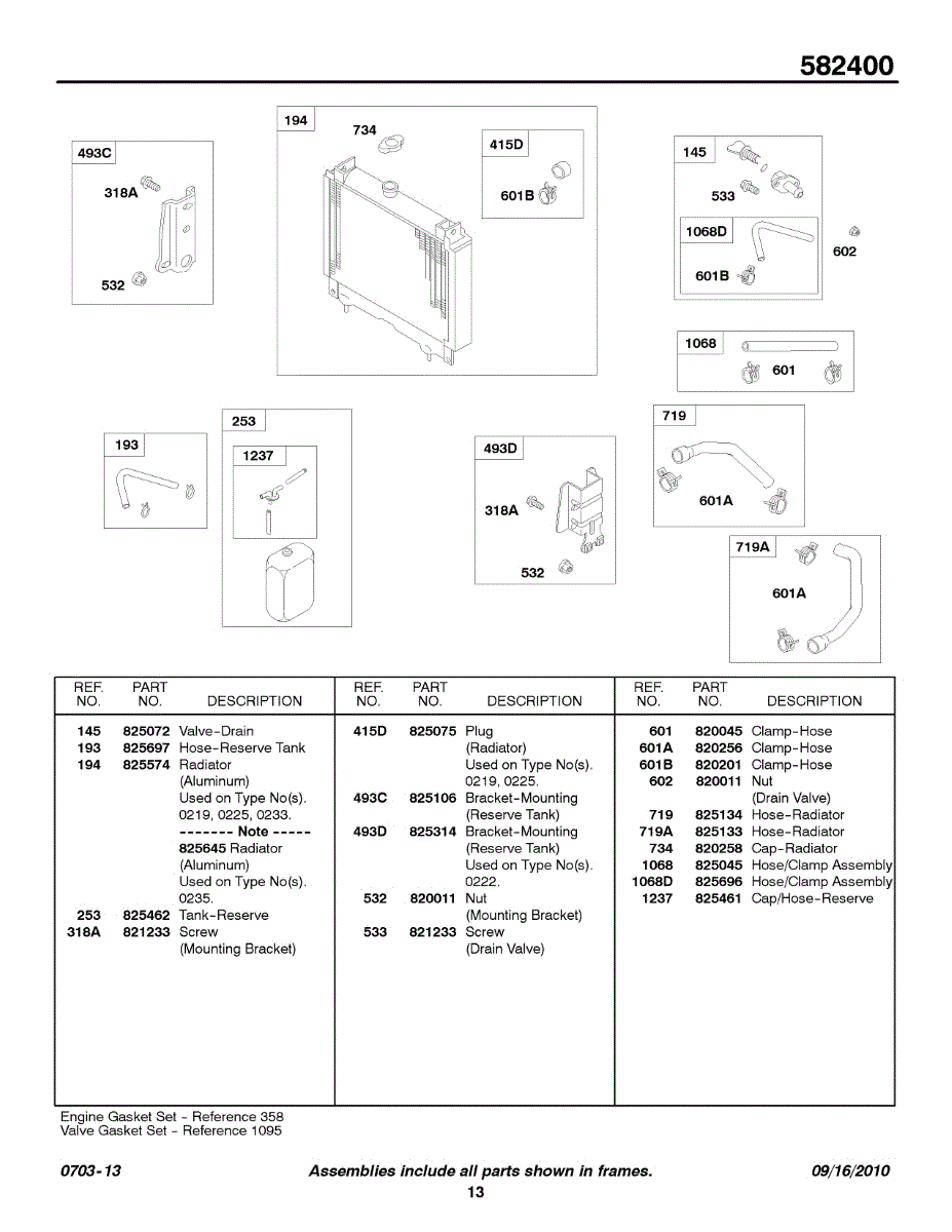 Parts for Briggs & Stratton 582447-0221-E2: Radiator, Hoses Parts