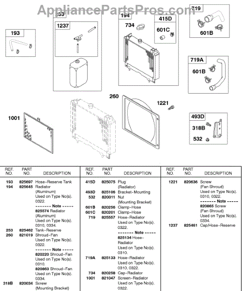Parts for Briggs & Stratton 589447-0334-99: Radiator, Hoses Parts