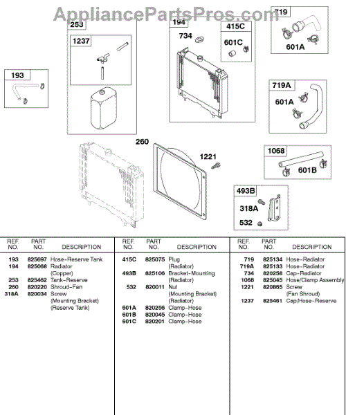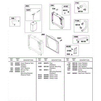 Parts for Briggs & Stratton 583447-0217-E2: Radiator, Hoses, Shroud Parts