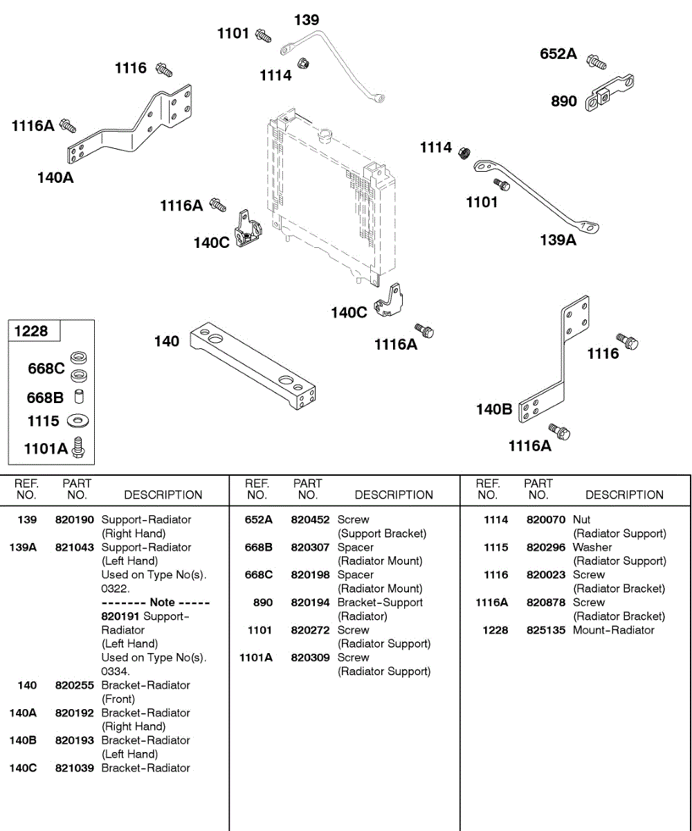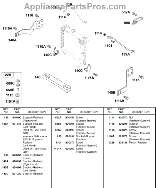 Parts for Briggs & Stratton 589447-0308-E2: Radiator Support Brackets Parts
