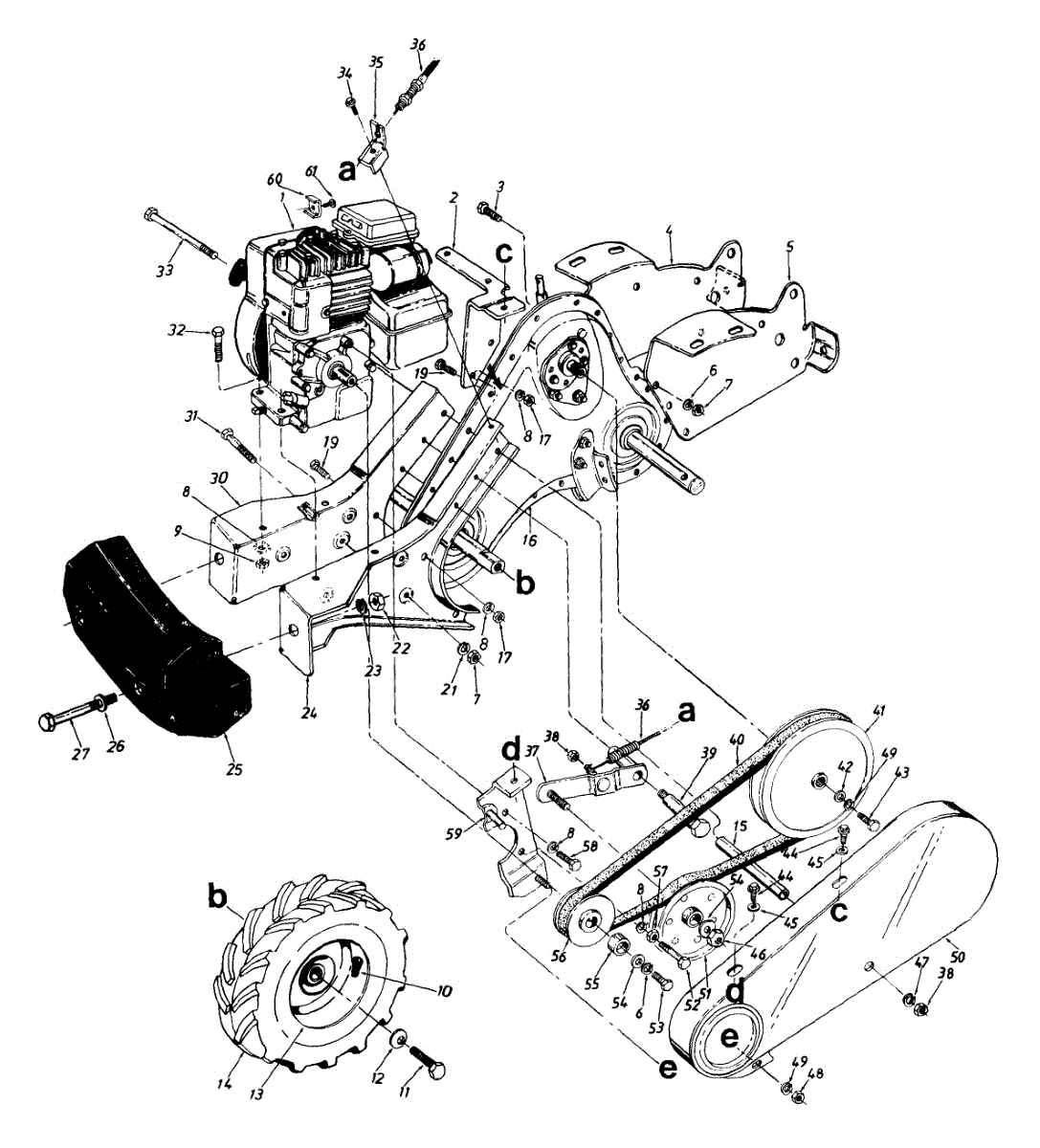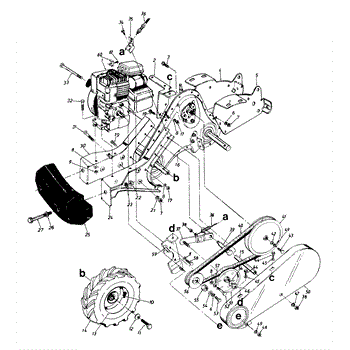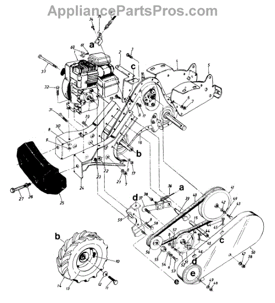 V-belt transfers power from engine to tiller components. Replace if equipment makes unusual noises, vibrates, or loses power. Confirm fit with model number.