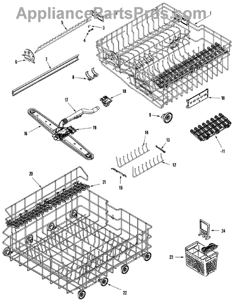 Note: New rack no longer includes removable tines or cup shelf. This part is a lower dishrack. The lower dishrack is the lower shelf of a dishwasher that holds plates, bowls, and utensils. To remove the old dishrack, simply pull it out and lift the wheels up from its track. Set it off the side, and lift the new dishrack. Slide it into its track and make sure it is locked in. If it is gliding in and out in a smooth way, it has been installed properly.This genuine replacement OEM part is sold individually and is compatible with Whirlpool brands include Whirlpool, Maytag, KitchenAid, Jenn-Air, Amana, Magic Chef, Admiral, Norge, Roper, and Sears/Kenmore brand appliances.