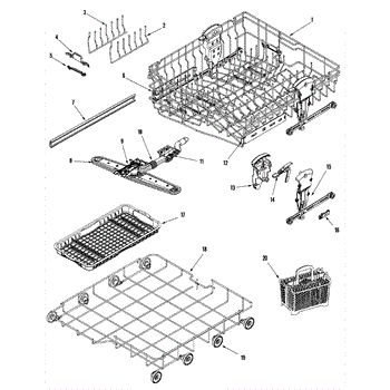 Dishwasher silverware basket includes both halves. Color: gray. Measures about 8 inches wide by 9-1/2 inches high by 12 inches deep.