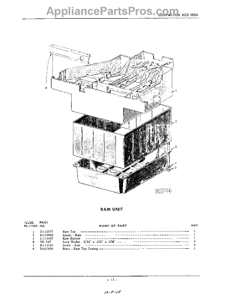 Parts for Kitchenaid KCS100A: 13 - Ram Parts