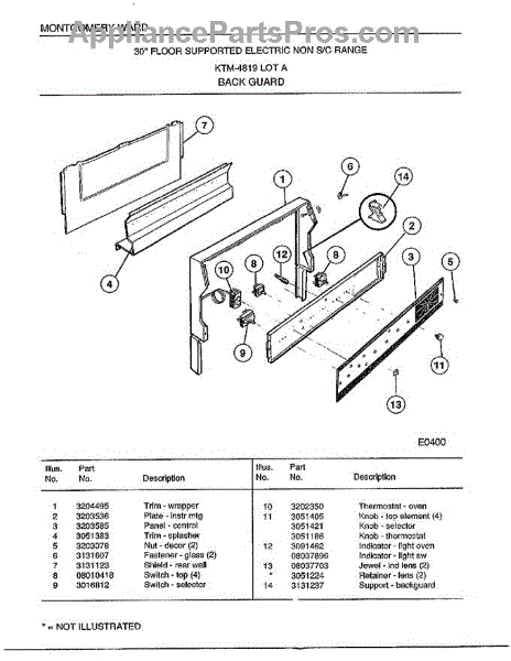 Parts for Frigidaire 4819A: Range / Backguard Parts