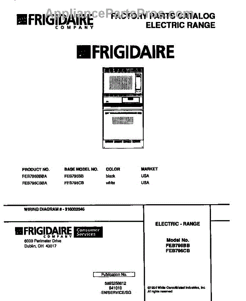 Parts for Frigidaire FEB796CBBA: 01 - Range, Electric Parts