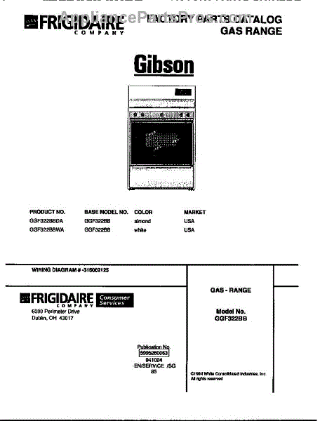 Parts for Frigidaire GGF322BBWA: 01 - Range, Gas Parts