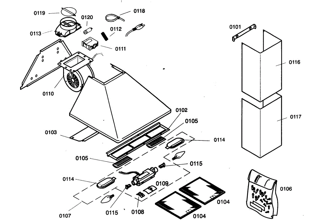 Air channel for range hood ventilation systems. Directs airflow from the blower to the exhaust duct. Replace if cracked, damaged, or missing.