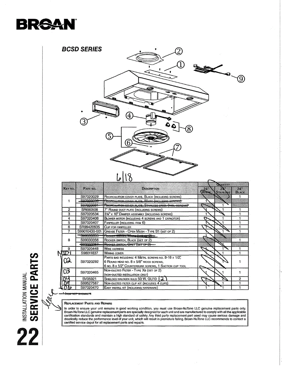 Mounting brackets, screws, and hardware to secure your range hood and complete duct connections. Replace missing or damaged installation components.