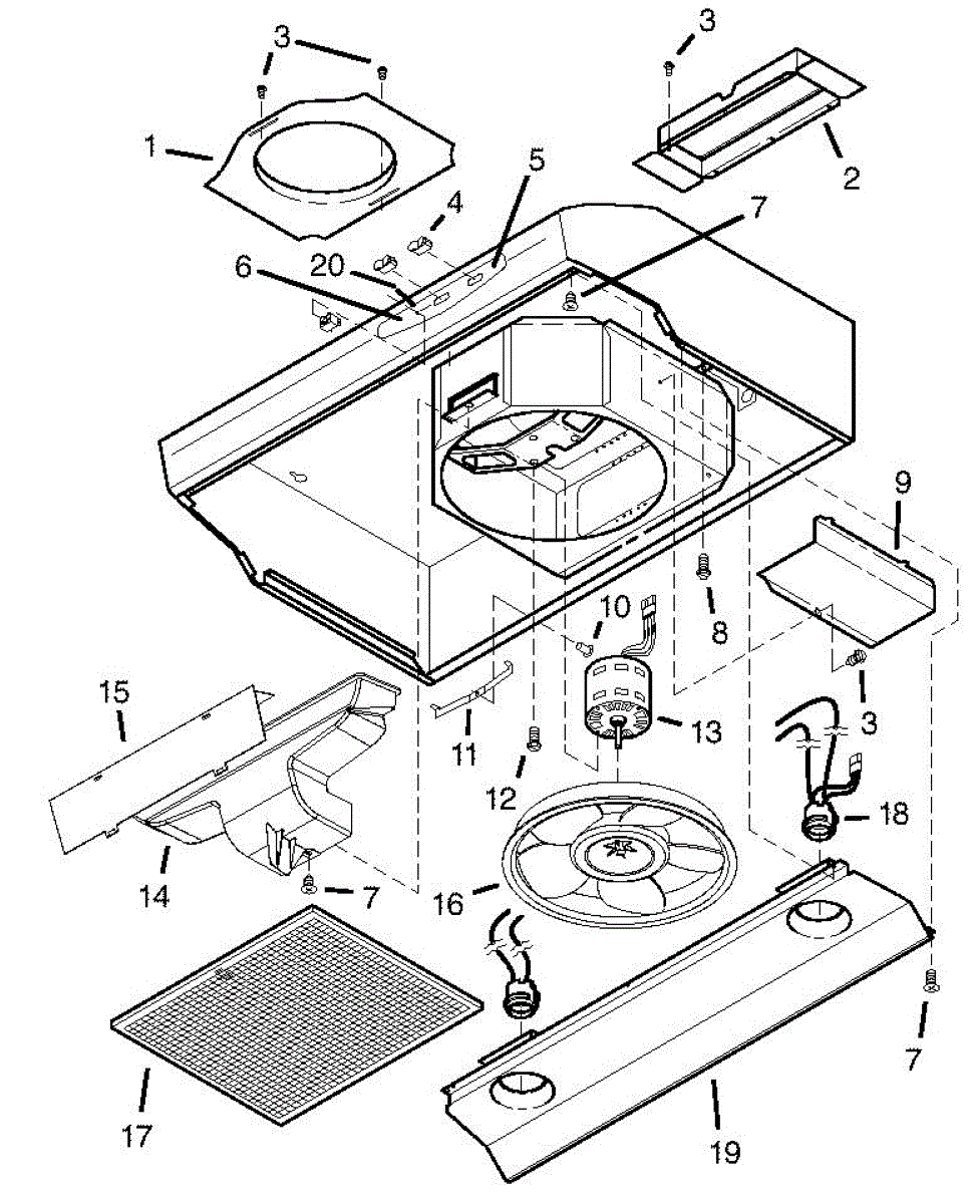 Replacement cover for range hood exterior housing. Restores appearance when original is cracked, broken, or damaged. Direct fit for multiple models.