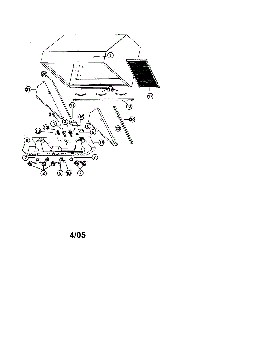 Range hood grease filter traps cooking oils and airborne particles. Replace when discolored or clogged to maintain ventilation efficiency. Verify fit.