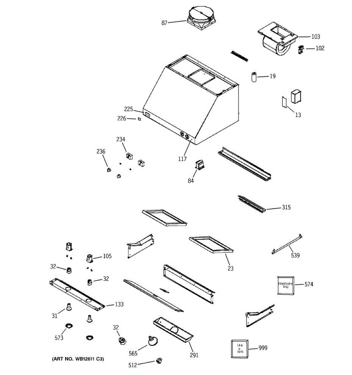 Hardware bag with screws, nuts, and washers for range hood installation and assembly. Replace lost or missing mounting hardware for secure installation.