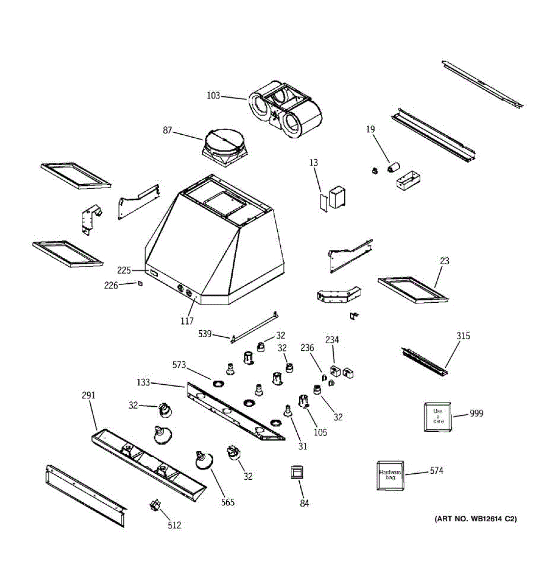 Hardware bag with screws, nuts, and washers for range hood installation and assembly. Replace lost or missing mounting hardware for secure installation.