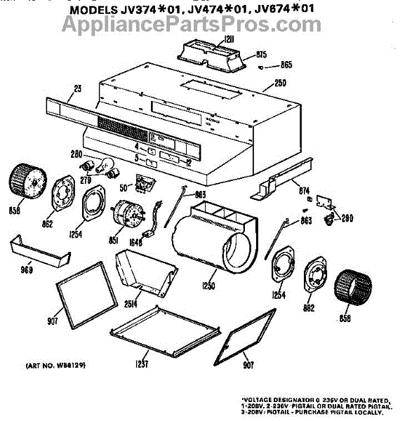 Parts for Ge JV374*01: Range Hood Parts