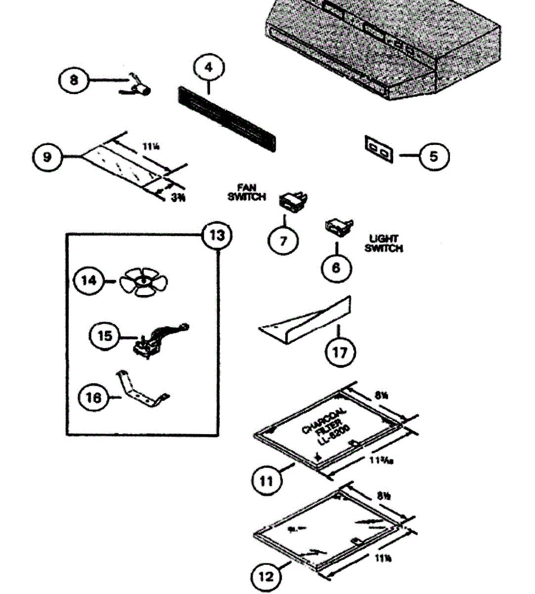Parts for Nutone LL6200: Range Hood Parts