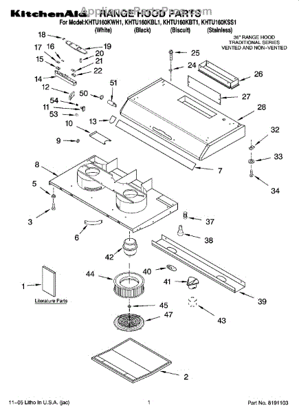 Parts for Kitchenaid KHTU160KSS1: 01 - Range Hood Parts
