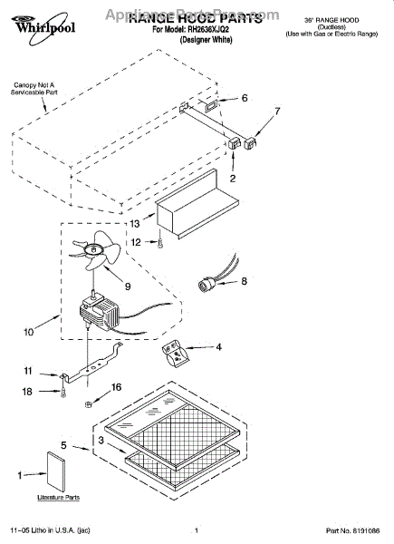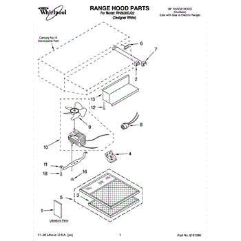 Parts for Whirlpool RH2636XJQ2: 01 - Range Hood Parts