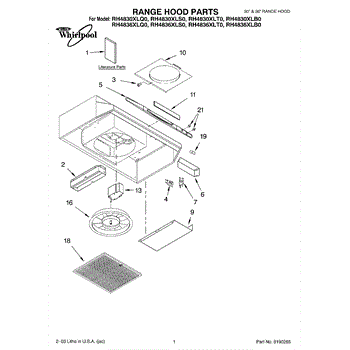 Parts for Whirlpool RH4836XLQ0: 01 - Range Hood Parts