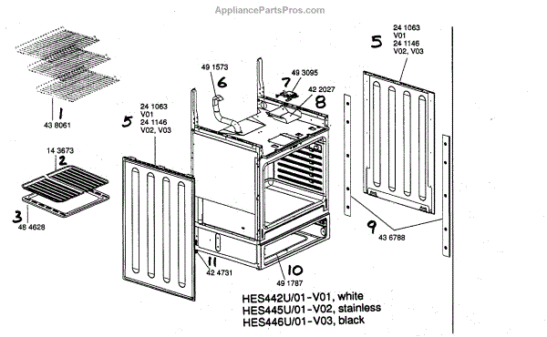Parts for Bosch HES442U/01: Range Paneling Shelving Parts