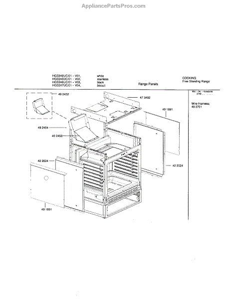 Parts for Bosch HGS247UC/01: Range Panels Parts