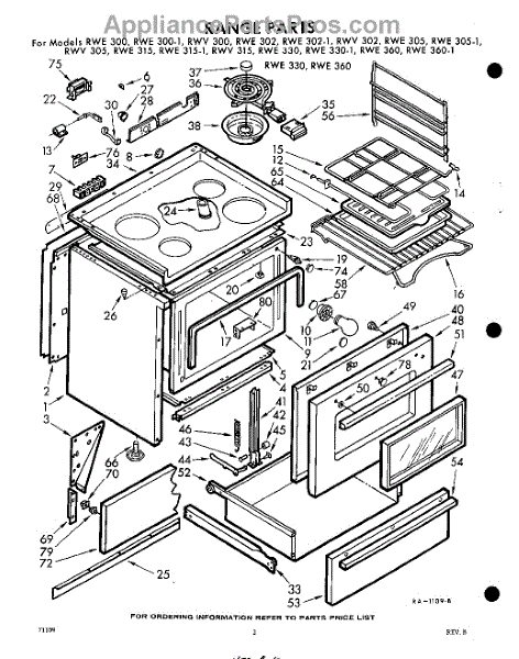 Parts for Whirlpool RWE3601: 02 - Range Parts