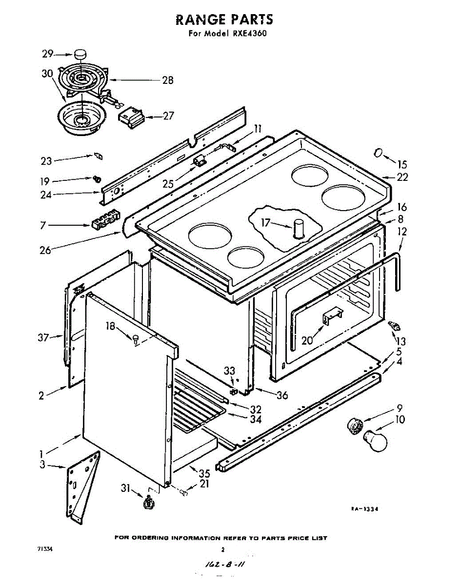 Parts for Whirlpool RXE4360: 02 - Range Parts