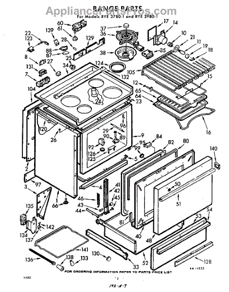 Parts for Whirlpool RYE37801: 02 - Range Parts