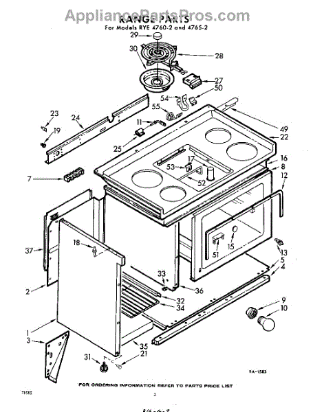 Parts for Whirlpool RYE47652: 02 - Range Parts