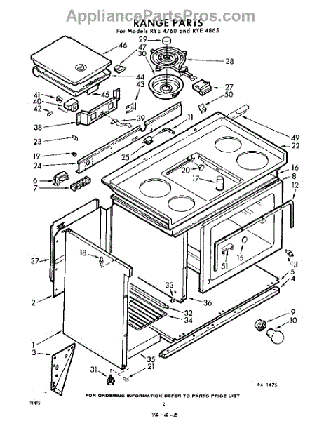 Parts for Whirlpool RYE4865: 02 - Range Parts