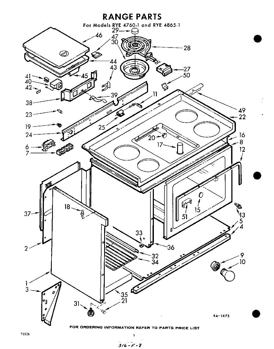 Parts for Whirlpool RYE48651: 02 - Range Parts