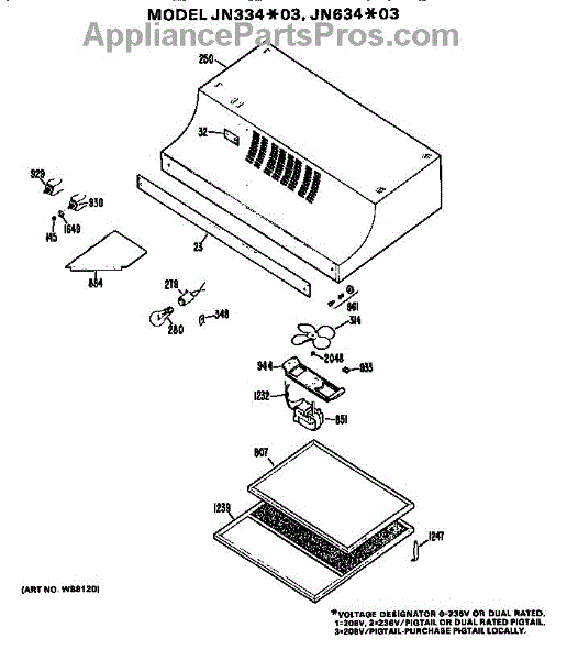 Parts for Ge JN634*03: Rangehood Assembly Parts