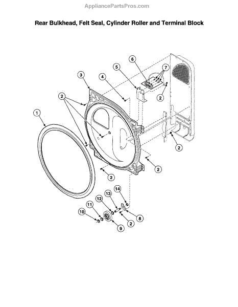 This rear bulkhead assembly with seal replaces the washer's rear tub enclosure to restore a watertight connection and support the drum. It prevents leaks and helps maintain proper tub alignment for reliable operation. What it does: