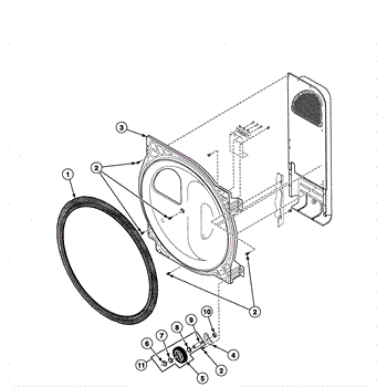This rear bulkhead assembly with seal replaces the washer's rear tub enclosure to restore a watertight connection and support the drum. It prevents leaks and helps maintain proper tub alignment for reliable operation. What it does: