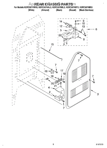 This terminal block is the insulated connection point where the appliance's incoming power ties into the internal wiring. Replacing a heat-damaged or loose block restores a safe, reliable electrical path and helps prevent arcing and intermittent power loss.