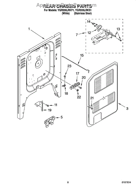 This terminal block is the insulated connection point where the appliance's incoming power ties into the internal wiring. Replacing a heat-damaged or loose block restores a safe, reliable electrical path and helps prevent arcing and intermittent power loss.