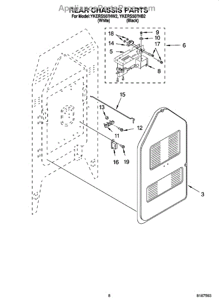 This terminal block is the insulated connection point where the appliance's incoming power ties into the internal wiring. Replacing a heat-damaged or loose block restores a safe, reliable electrical path and helps prevent arcing and intermittent power loss.