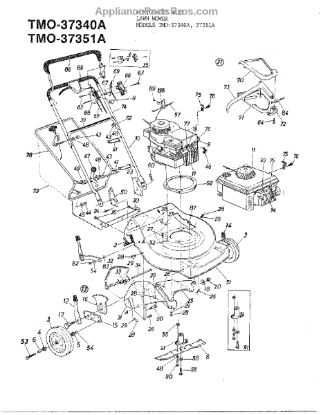 Parts for Mtd 37340A: 3.5Hp 20" Rear Discharge Mower Parts